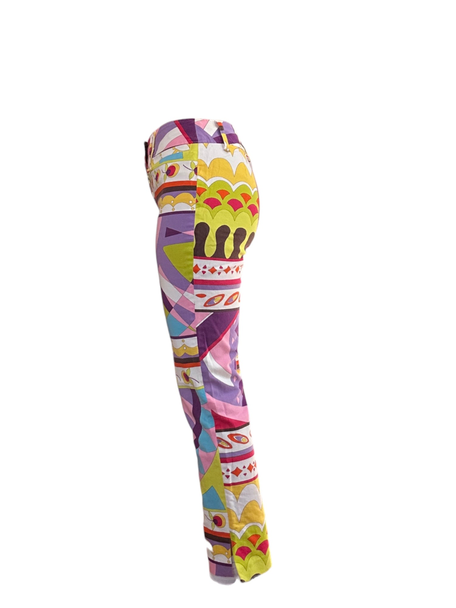 Bold, vibrant, and unapologetically statement-making, these vintage capri pants from D&G by Dolce & Gabbana are a true collector’s piece. Produced during the iconic Ittierre era of the late 1990s to early 2000s, they feature a kaleidoscopic print reminiscent of Pucci's iconic designs, fused with D&G’s sharp tailoring.