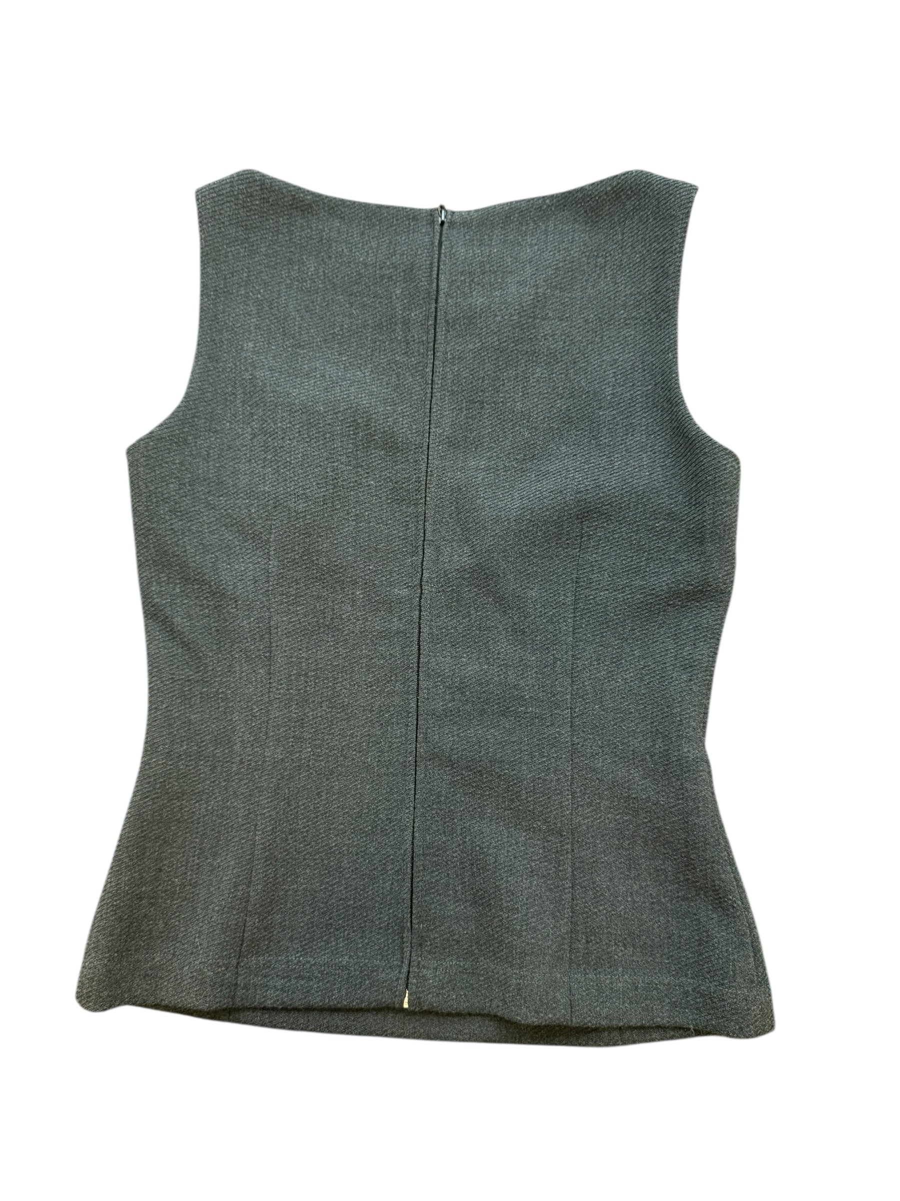 An understated essential from Dolce & Gabbana’s early 2000s tailoring era, this sleeveless wool blend top features a sculpted, waist-defining silhouette and a clean boat neckline. The minimal design highlights the label’s mastery of precision tailoring and Italian craftsmanship — refined, flattering, and endlessly versatile.