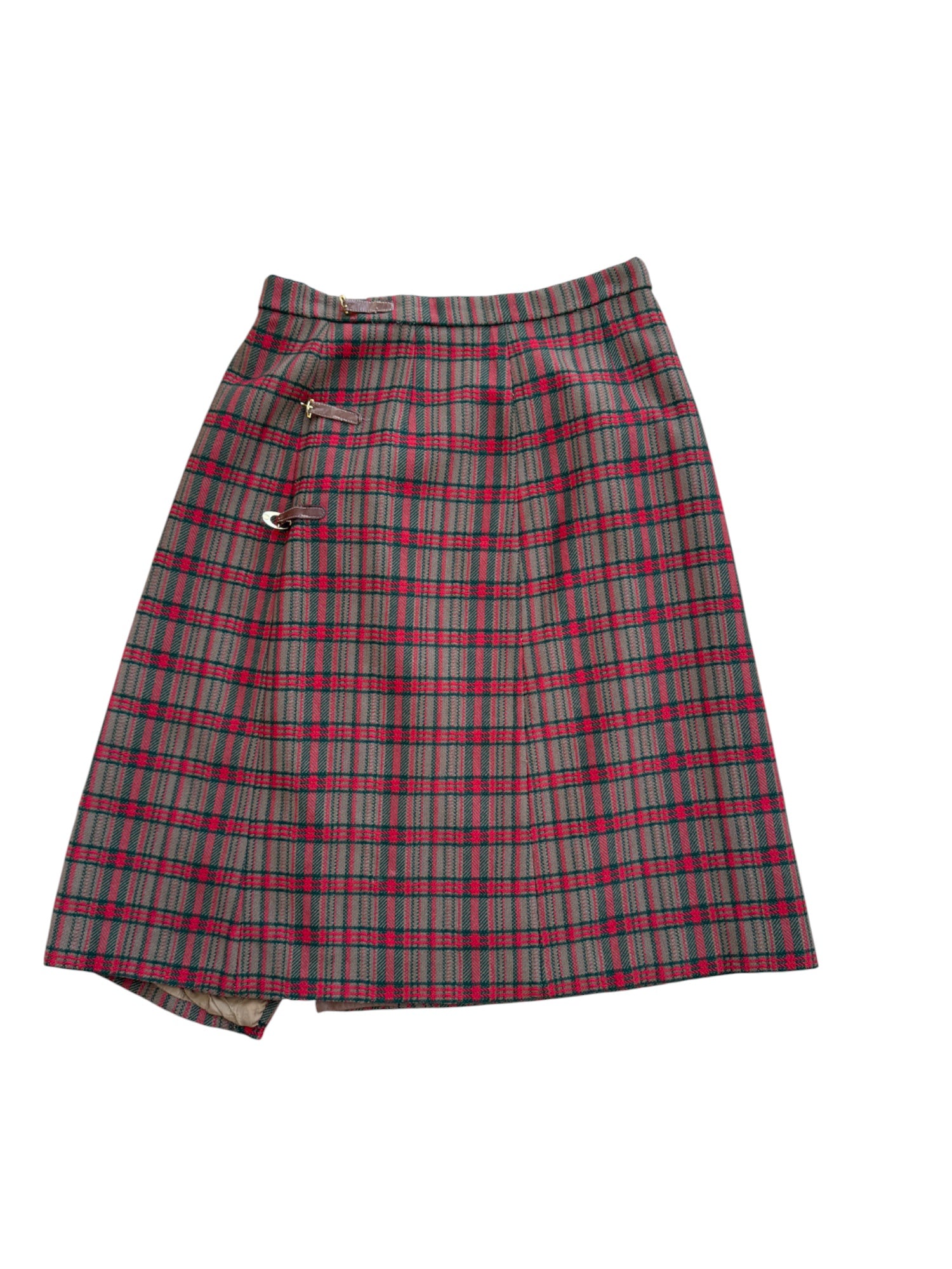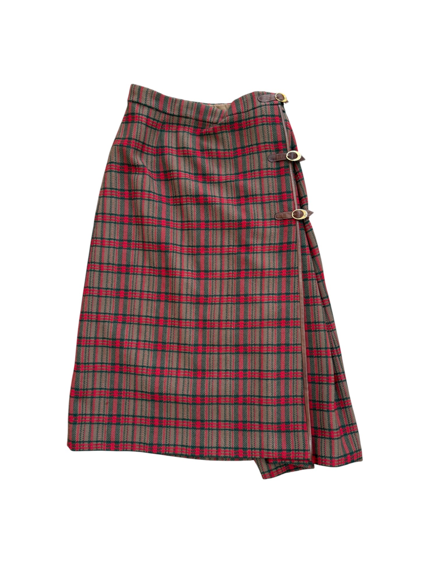 Gucci Plaid Wool Kilt Skirt with Leather Buckles