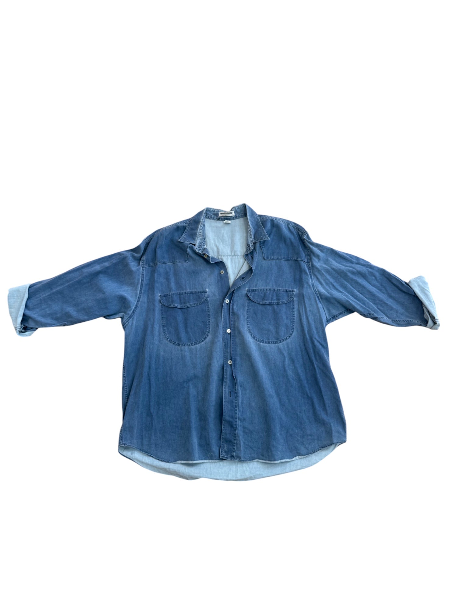 A timeless essential from Giorgio Armani, this vintage chambray shirt captures effortless cool with Italian sophistication. Made from ultra-soft, medium-weight cotton denim, it features an easy oversized fit with classic Western detailing and a beautifully faded wash.